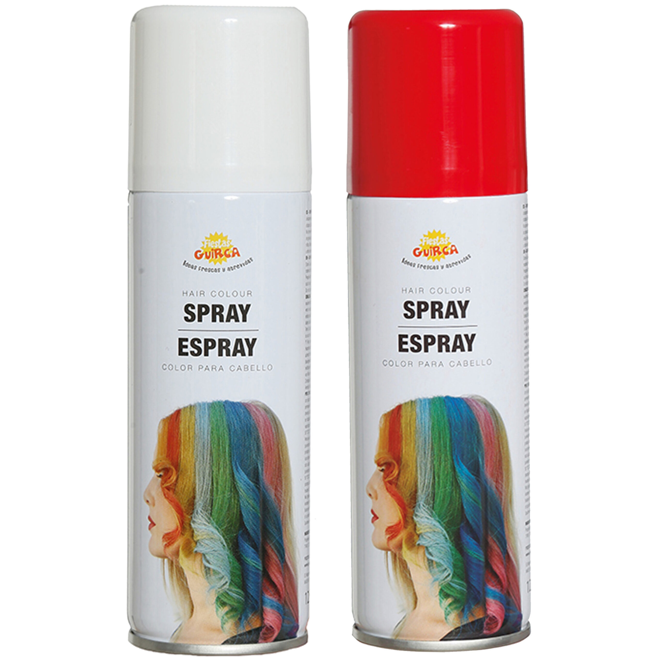 Carnaval verkleed haar verf/spray in de kleuren rood en wit 125 ml. Kleur makkelijk je haar. Deze spray is makkelijk uitwasbaar met water. Verkleed accessoires voor kinderen en volwassenen. , Dit artikel bestaat uit:, 1x Carnaval verkleed haar verf/spray – wit – spuitbus – 125 ml, 1x Carnaval verkleed haar verf/spray – rood – spuitbus – 125 ml