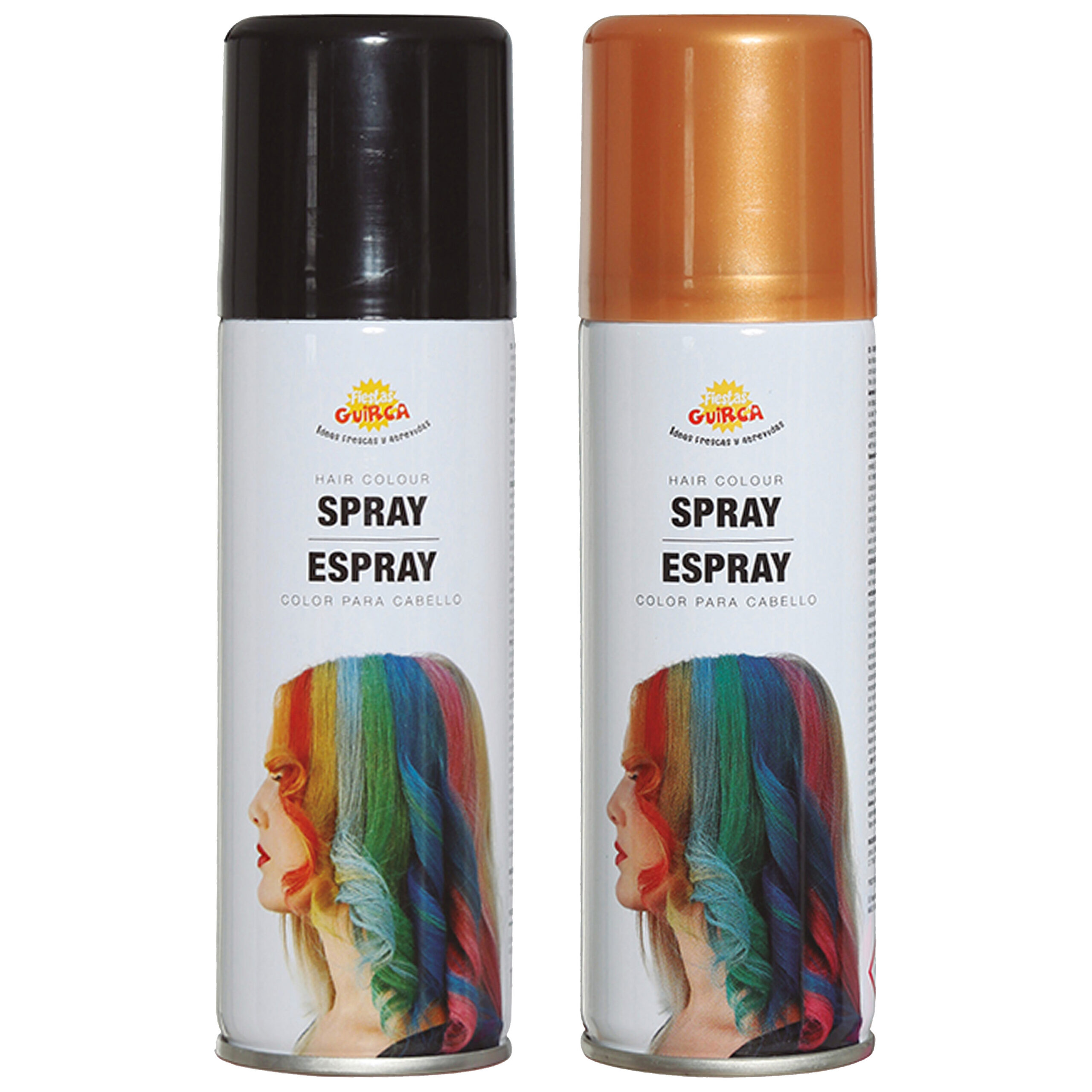 Carnaval verkleed haar verf/spray in de kleuren zwart en goud 125 ml. Kleur makkelijk je haar. Deze spray is makkelijk uitwasbaar met water. Verkleed accessoires voor kinderen en volwassenen. , Dit artikel bestaat uit:, 1x Carnaval verkleed haar verf/spray – goud – spuitbus – 125 ml, 1x Carnaval verkleed haar verf/spray – zwart – spuitbus – 125 ml