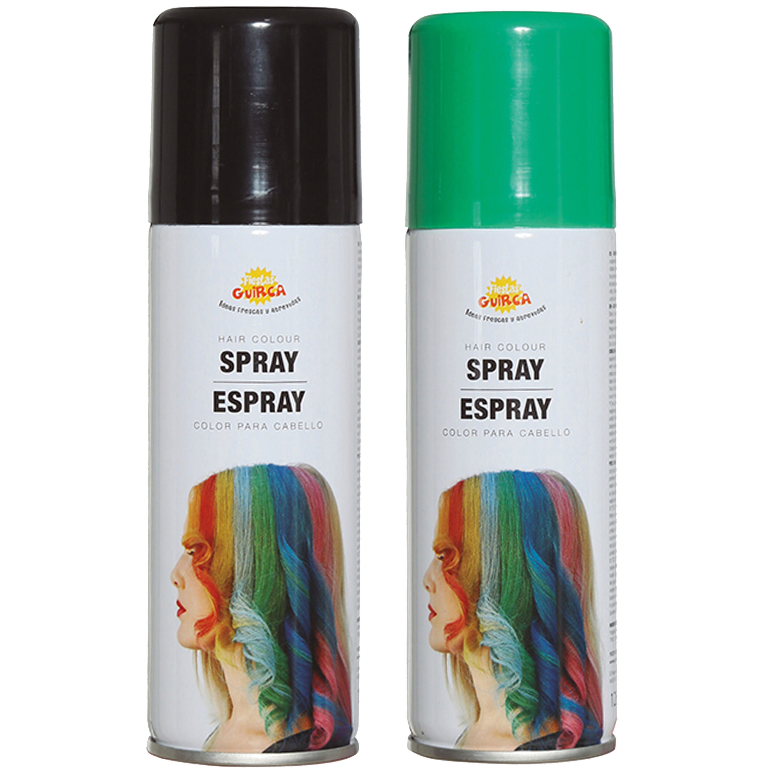 Carnaval verkleed haar verf/spray in de kleuren zwart en groen 125 ml. Kleur makkelijk je haar. Deze spray is makkelijk uitwasbaar met water. Verkleed accessoires voor kinderen en volwassenen. , Dit artikel bestaat uit:, 1x Carnaval verkleed haar verf/spray – groen – spuitbus – 125 ml, 1x Carnaval verkleed haar verf/spray – zwart – spuitbus – 125 ml