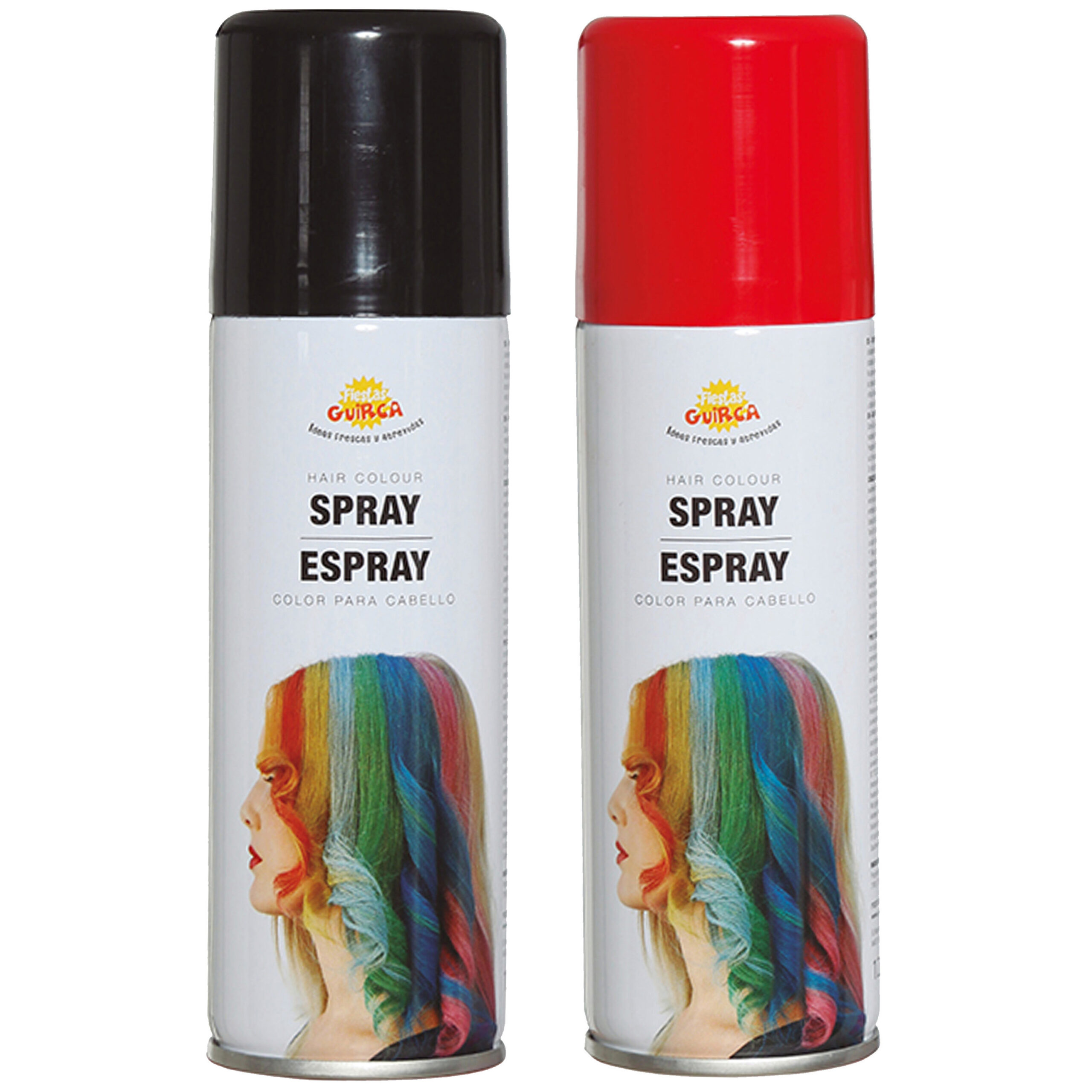 Carnaval verkleed haar verf/spray in de kleuren zwart en rood 125 ml. Kleur makkelijk je haar. Deze spray is makkelijk uitwasbaar met water. Verkleed accessoires voor kinderen en volwassenen. , Dit artikel bestaat uit:, 1x Carnaval verkleed haar verf/spray – rood – spuitbus – 125 ml, 1x Carnaval verkleed haar verf/spray – zwart – spuitbus – 125 ml