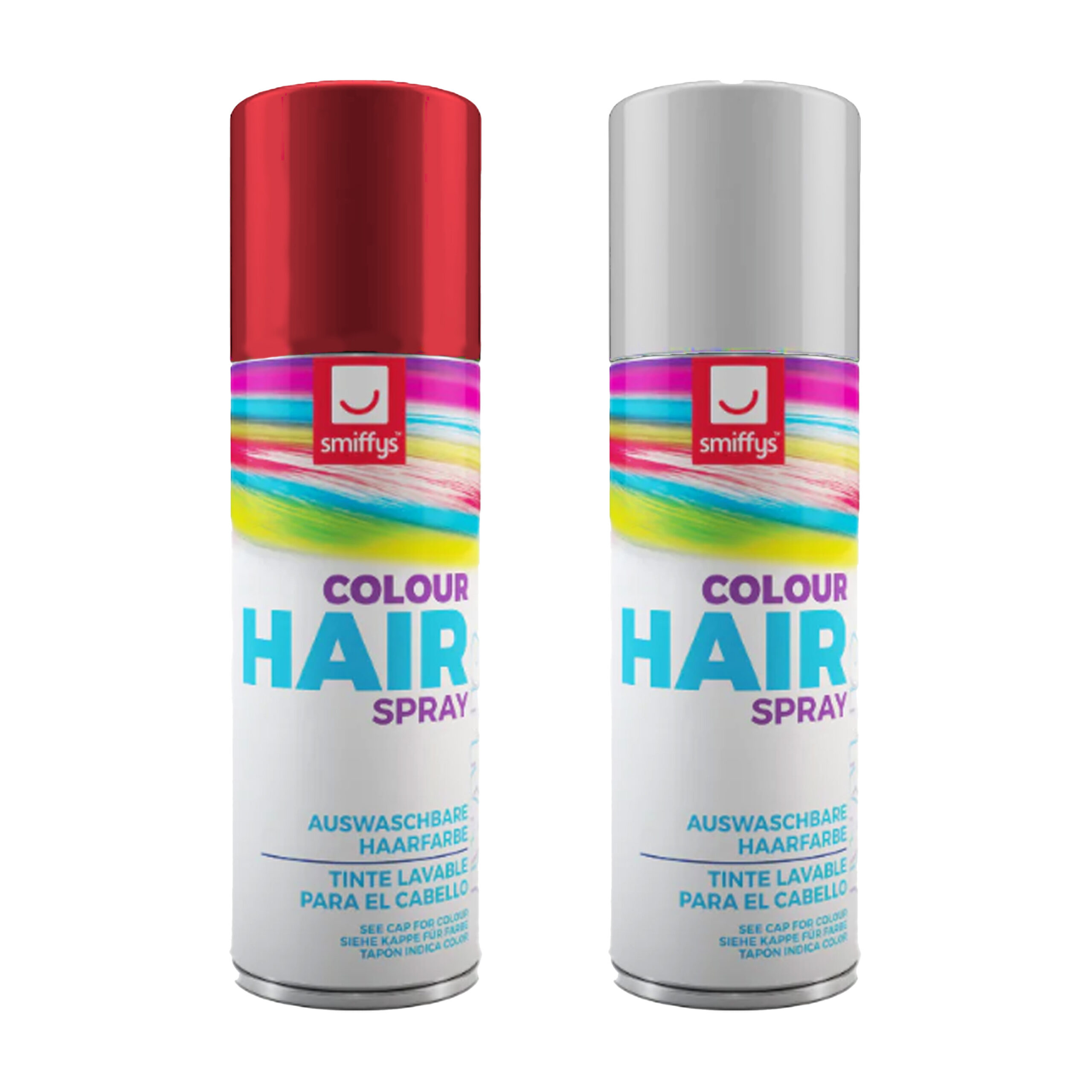 Carnaval verkleed hoofdhaar verf/spray in de kleuren wit en rood in busjes van 125 ml. Set van 2x stuks dus. Kleur makkelijk je haar. Deze spray is makkelijk uitwasbaar met water. Verkleed accessoires voor kinderen en volwassenen. , Dit artikel bestaat uit:, 1x Carnaval haarverf – wit – spuitbus – 125 ml – haarspray, 1x Carnaval haarverf – rood – spuitbus – 125 ml – haarspray