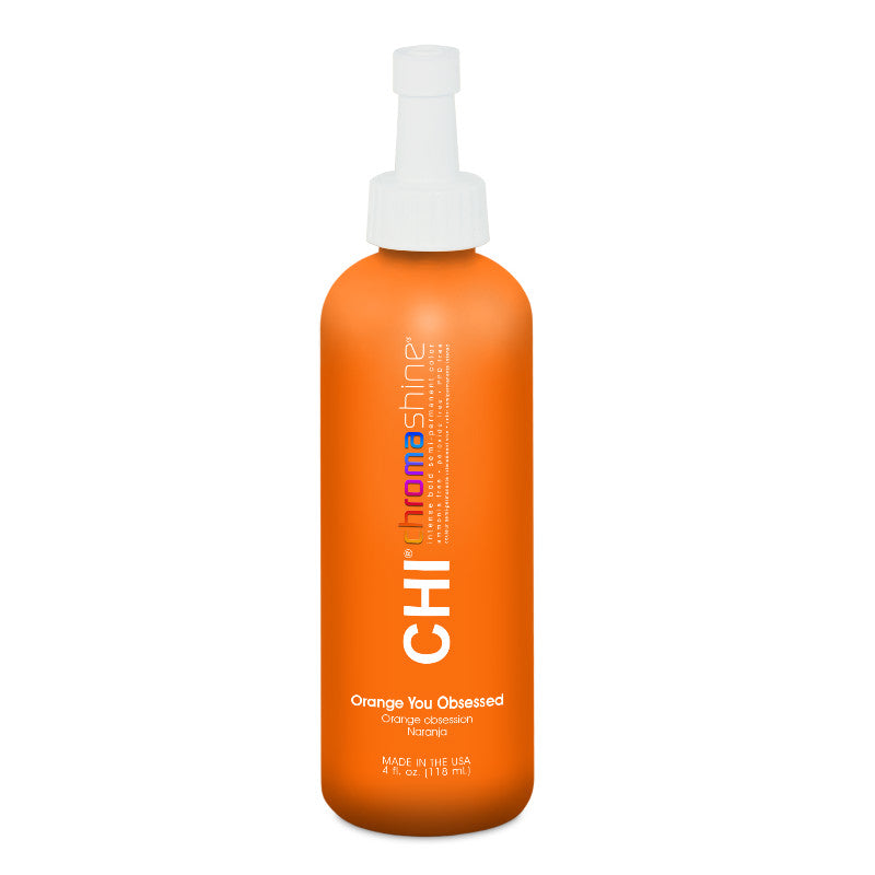 CHI Chromashine Intense Bold Semi-permanent Haarverf is een verfsysteem met innovatieve Chroma Intense Dye Technology. Dankzij de Chroma Intense Dye Technology wordt het haar langduriger voorzien van intensere kleuren. De kleurstoffen kunnen direct aangebracht worden op gebleekt of pre-verlicht haar. De zijde proteïnen helpen het haar te versterken en voegen een schitterende glans toe aan het haar. De haarkleur is helderder en levendiger. De CHI Chromashine Intense Bold Semi-permanent Haarverf is verkrijgbaar in verschillende kleuren: Mellow My Yellow, Orange You Obsessed, Viva Violet, Out Of The Blue, Onyx Black, Shades of Gray, Pearl White, Dangerously Red en Grass Roots.