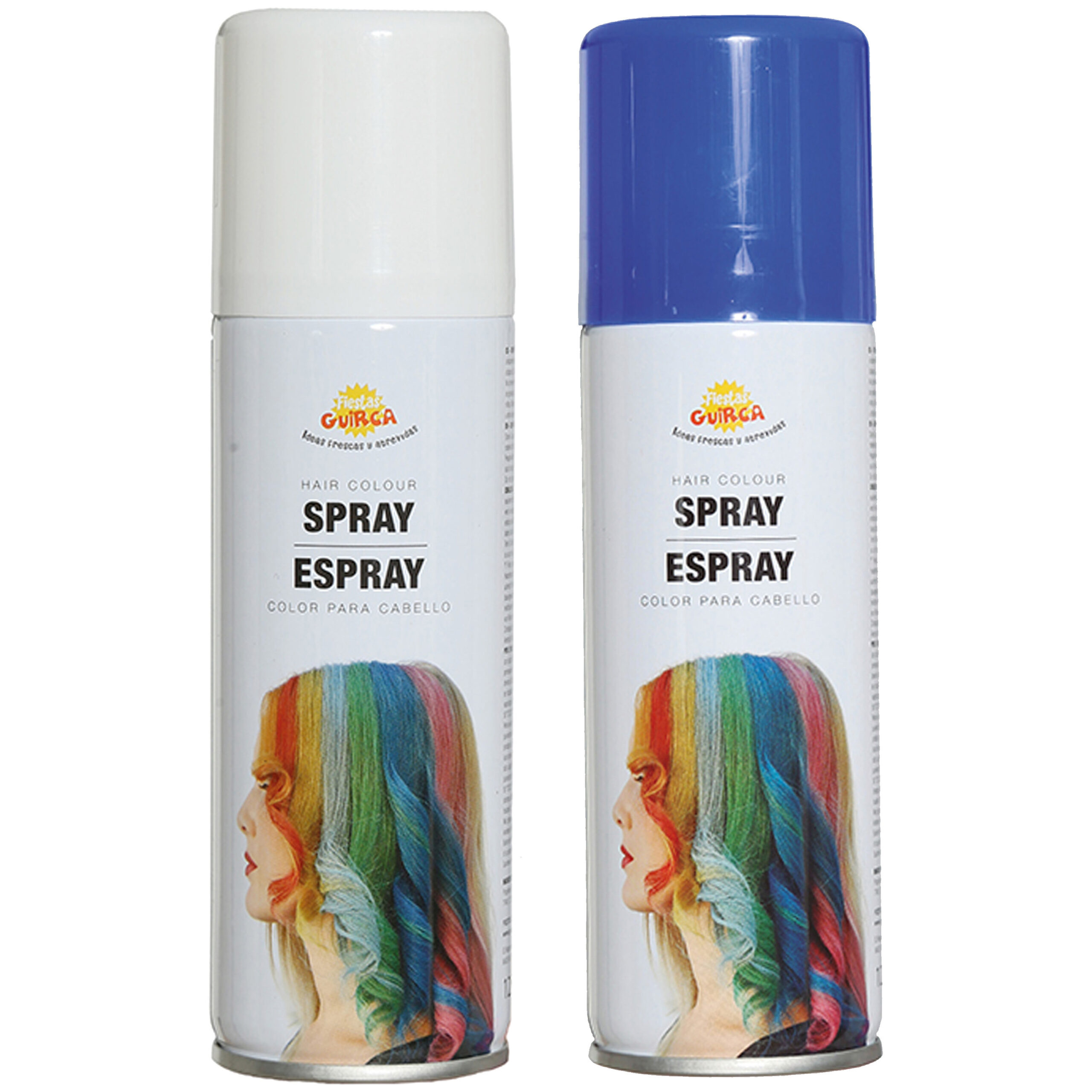 Carnaval verkleed haar verf/spray in de kleuren blauw en wit 125 ml. Kleur makkelijk je haar. Deze spray is makkelijk uitwasbaar met water. Verkleed accessoires voor kinderen en volwassenen. , Dit artikel bestaat uit:, 1x Carnaval verkleed haar verf/spray – wit – spuitbus – 125 ml, 1x Carnaval verkleed haar verf/spray – blauw – spuitbus – 125 ml