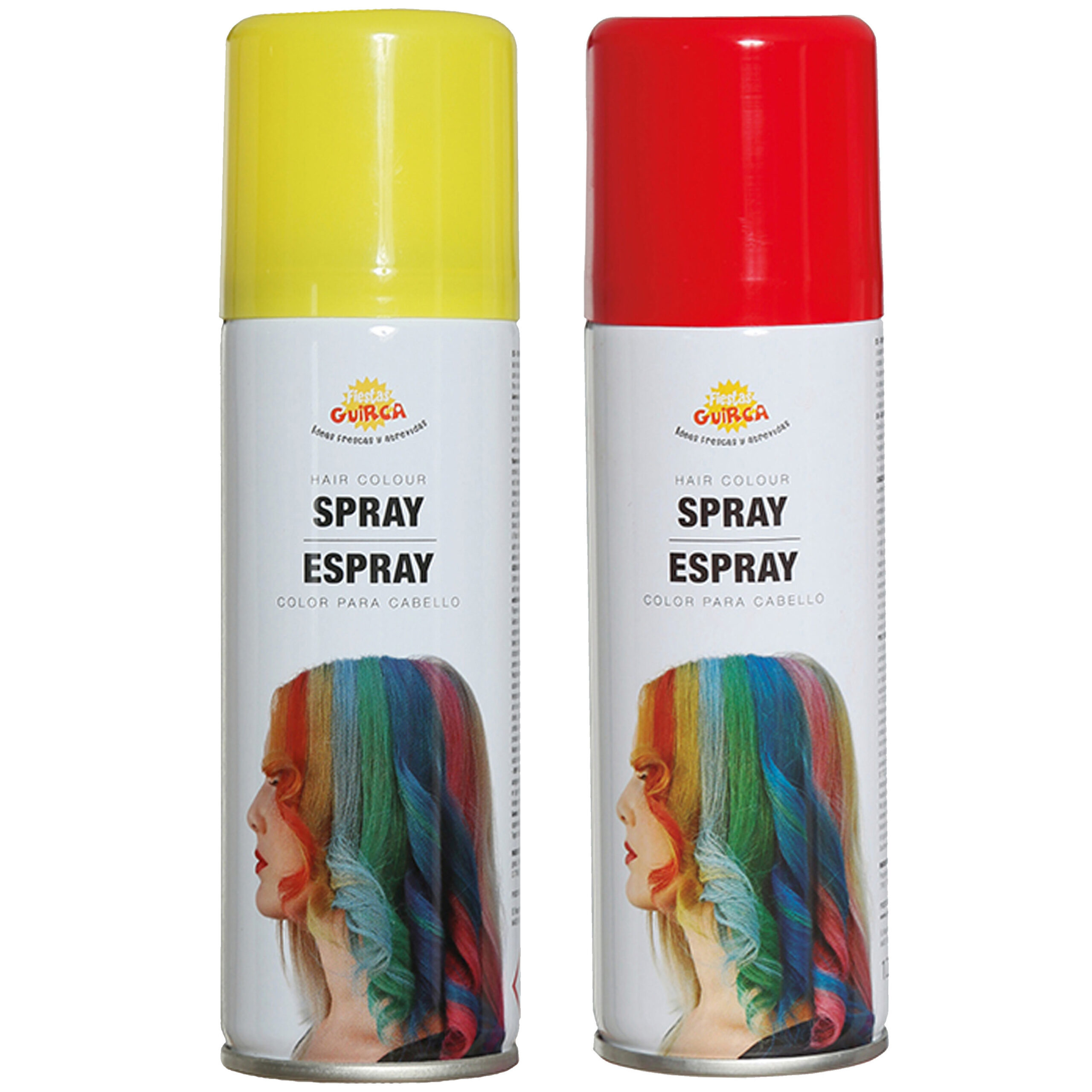 Carnaval verkleed haar verf/spray in de kleuren rood en geel 125 ml. Kleur makkelijk je haar. Deze spray is makkelijk uitwasbaar met water. Verkleed accessoires voor kinderen en volwassenen. , Dit artikel bestaat uit:, 1x Carnaval verkleed haar verf/spray – geel – spuitbus – 125 ml, 1x Carnaval verkleed haar verf/spray – rood – spuitbus – 125 ml
