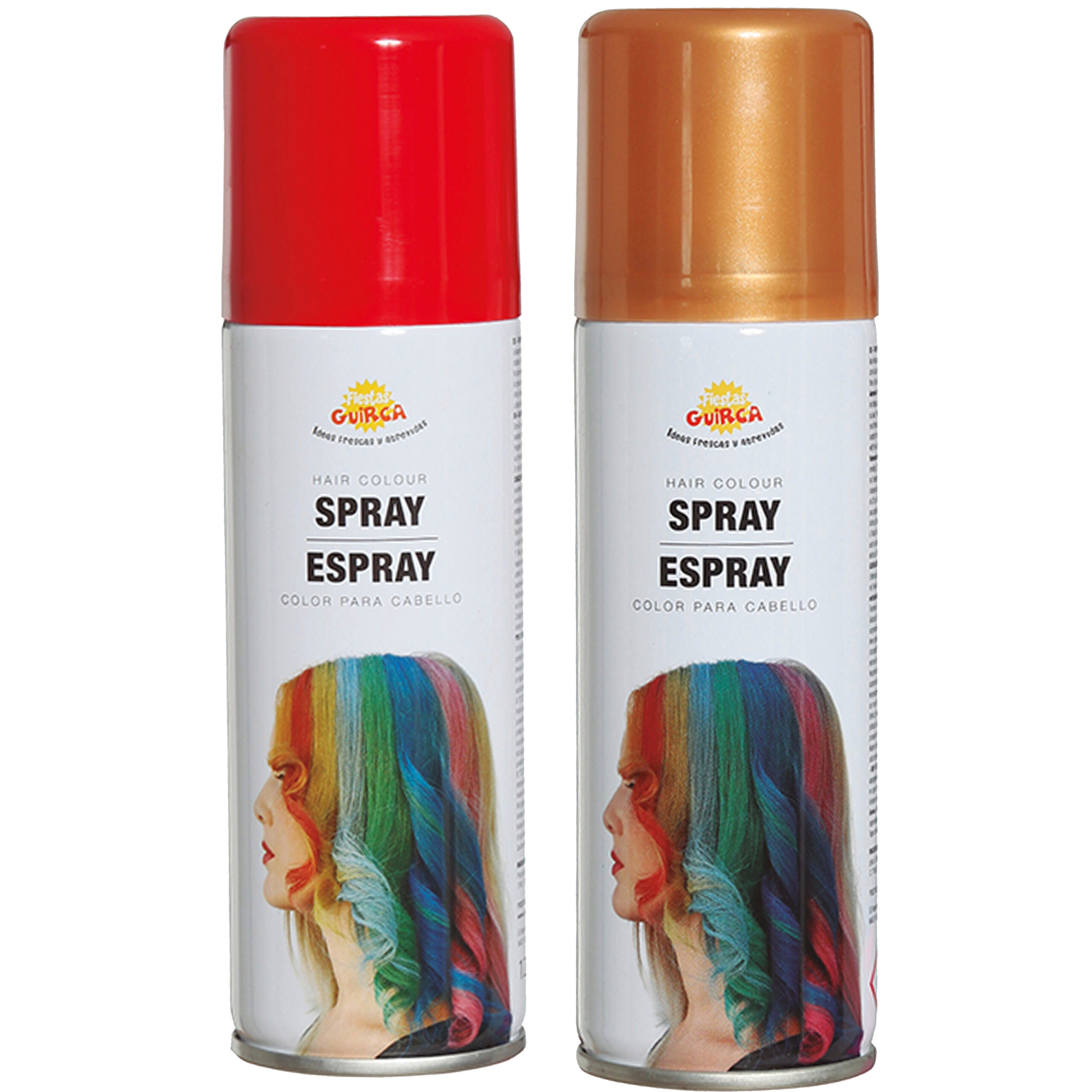 Carnaval verkleed haar verf/spray in de kleuren rood en goud 125 ml. Kleur makkelijk je haar. Deze spray is makkelijk uitwasbaar met water. Verkleed accessoires voor kinderen en volwassenen. , Dit artikel bestaat uit:, 1x Carnaval verkleed haar verf/spray – rood – spuitbus – 125 ml, 1x Carnaval verkleed haar verf/spray – goud – spuitbus – 125 ml