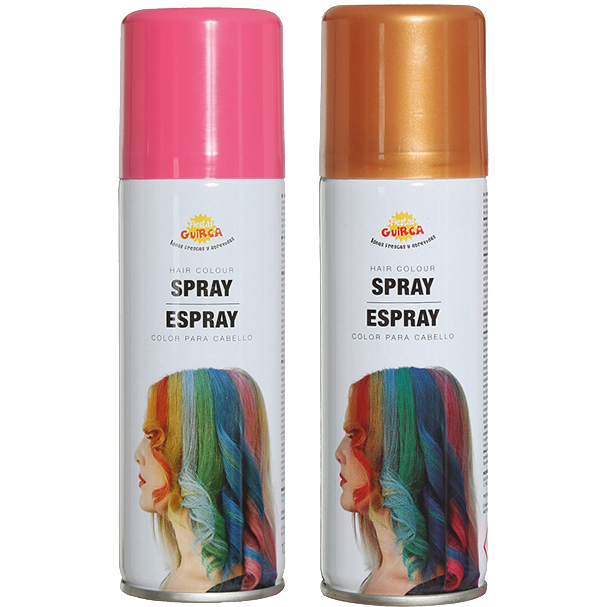 Carnaval verkleed haar verf/spray in de kleuren roze en goud 125 ml. Kleur makkelijk je haar. Deze spray is makkelijk uitwasbaar met water. Verkleed accessoires voor kinderen en volwassenen. , Dit artikel bestaat uit:, 1x Carnaval verkleed haar verf/spray – roze – spuitbus – 125 ml, 1x Carnaval verkleed haar verf/spray – goud – spuitbus – 125 ml