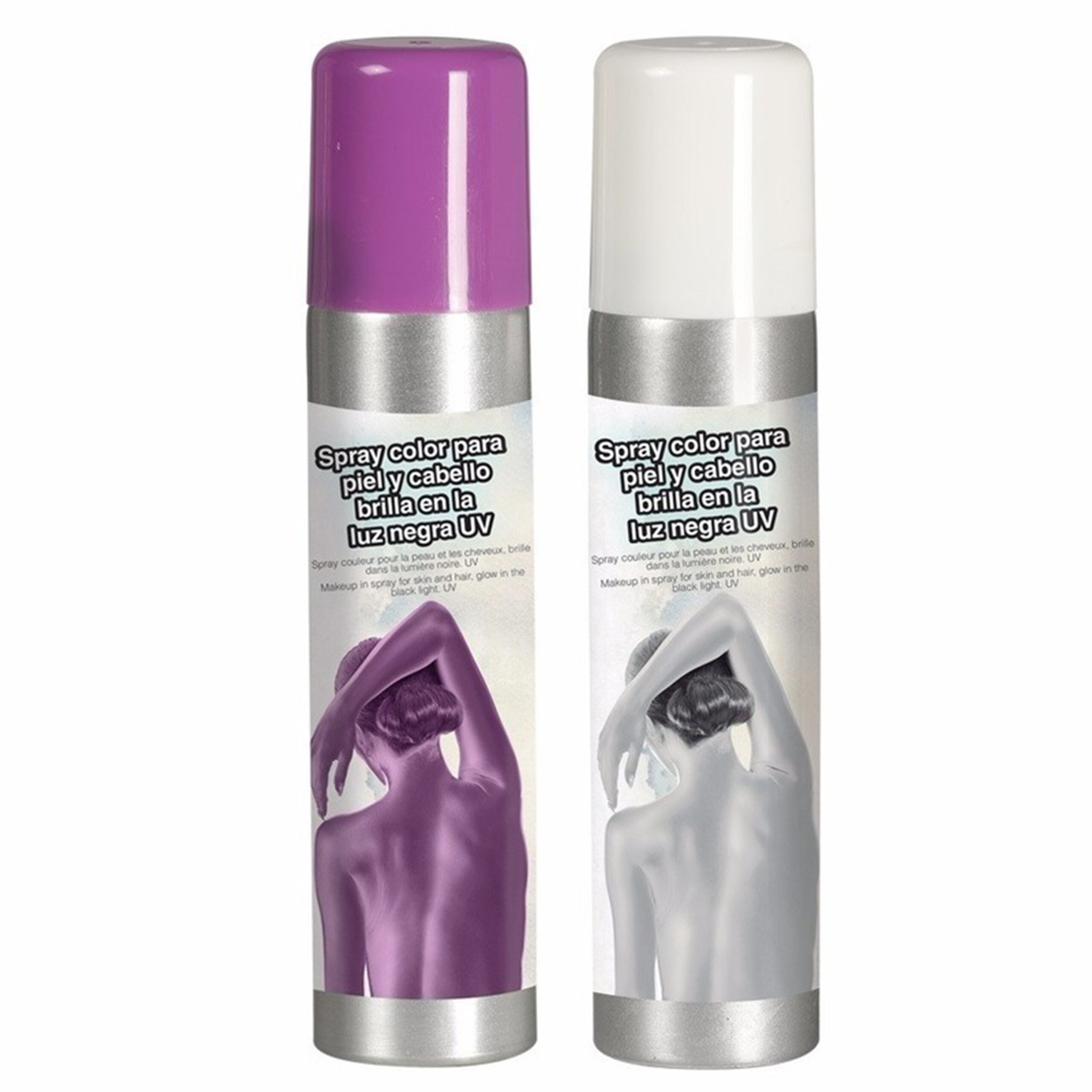 Guirca Haarspray/bodypaint spray – 2x kleuren – wit en paars – 75 ml