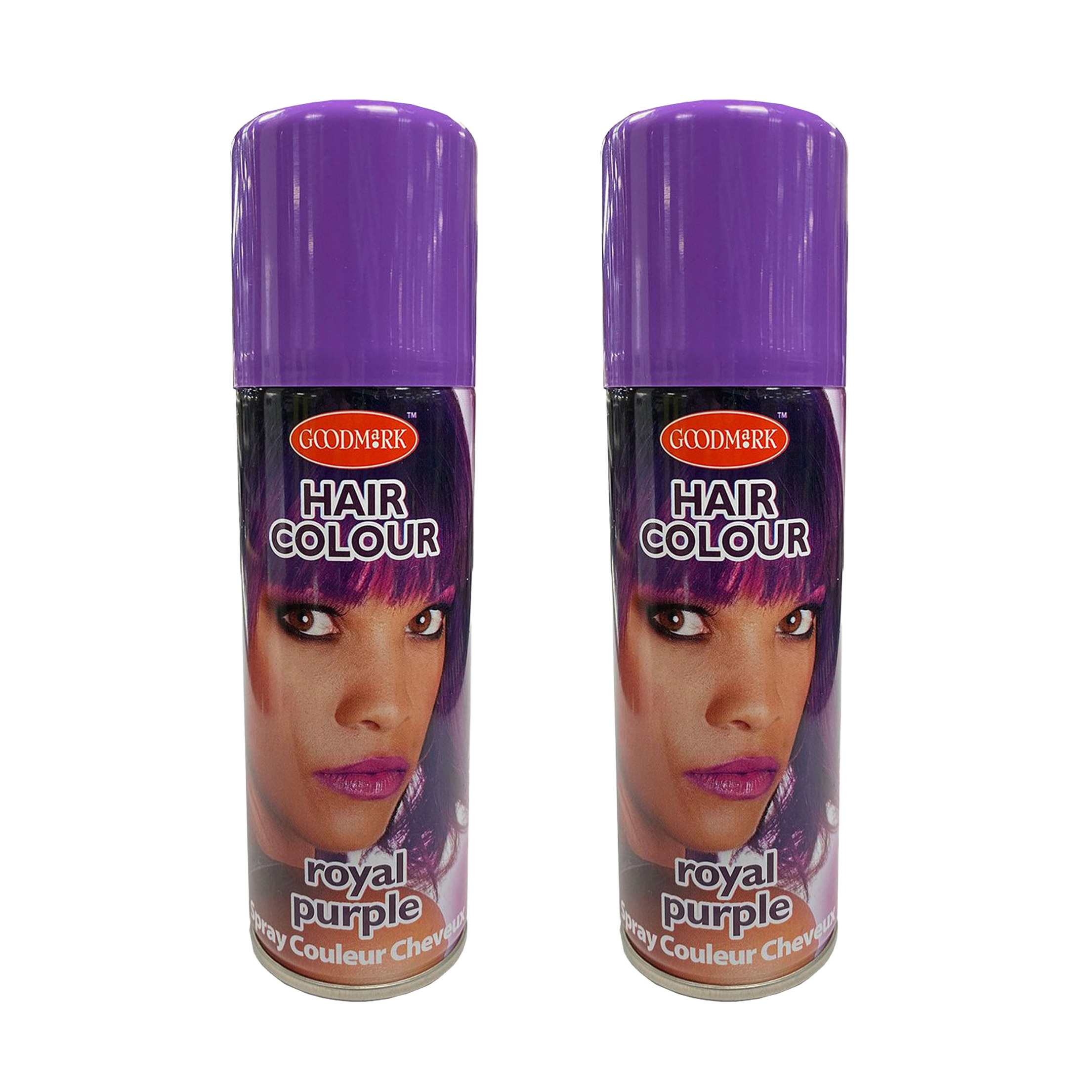 2x haarspray of haarverf busjes in de kleur paars. Deze haarspray is gemakkelijk uitwasbaar. De inhoud van deze haarspray bus is 125 ml. Maak uw verkleed outfit helemaal compleet met gekleurd haar. Geschikt voor volwassenen en kinderen. Verkleed accessoires.
