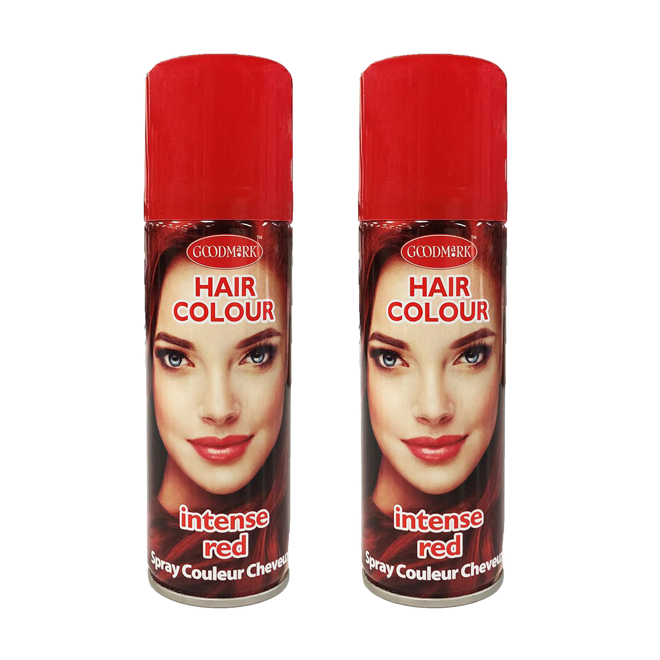 2x haarspray of haarverf busjes in de kleur rood. Deze haarspray is gemakkelijk uitwasbaar. De inhoud van deze haarspray bus is 125 ml. Maak uw verkleed outfit helemaal compleet met gekleurd haar. Geschikt voor volwassenen en kinderen. Verkleed accessoires.