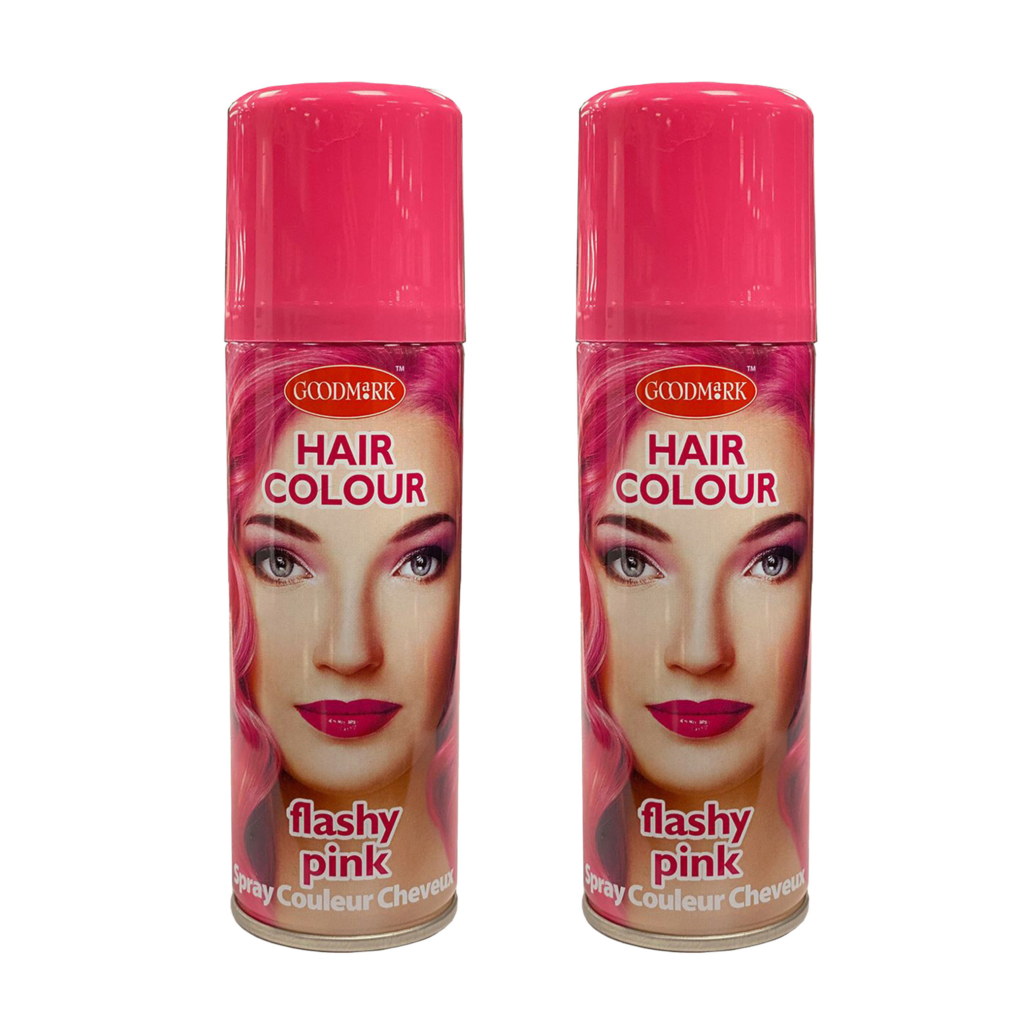 2x haarspray of haarverf busjes in de kleur roze. Deze haarspray is gemakkelijk uitwasbaar. De inhoud van deze haarspray bus is 125 ml. Maak uw verkleed outfit helemaal compleet met gekleurd haar. Geschikt voor volwassenen en kinderen. Verkleed accessoires.