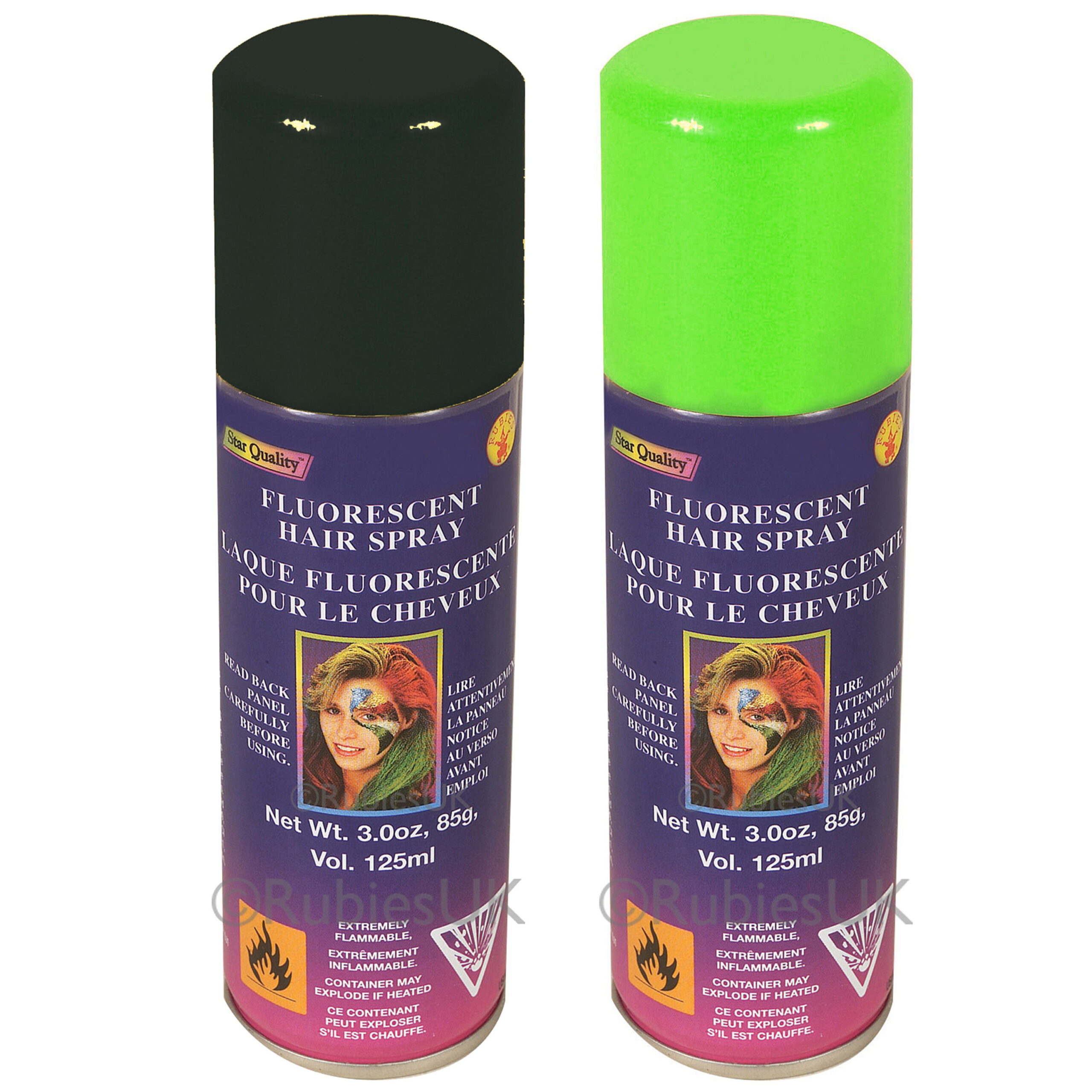 Haarverf/haarspray, set van 2x stuks, in de kleuren zwart en neon groen. De spuitbus heeft per stuk een inhoud van 125 ml.
