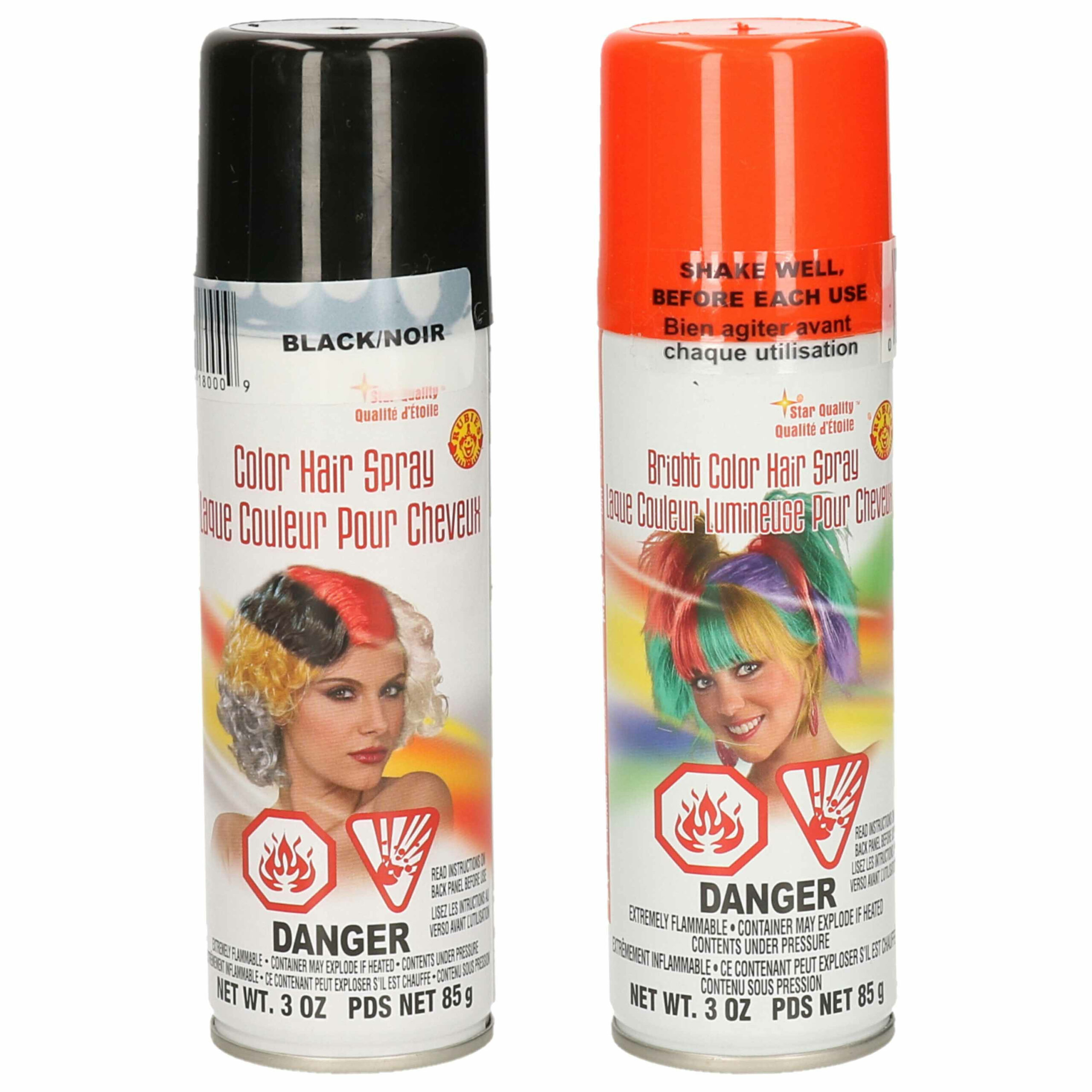 Haarverf/haarspray, set van 2x stuks, in de kleuren zwart en neon oranje. De spuitbus heeft per stuk een inhoud van 125 ml.