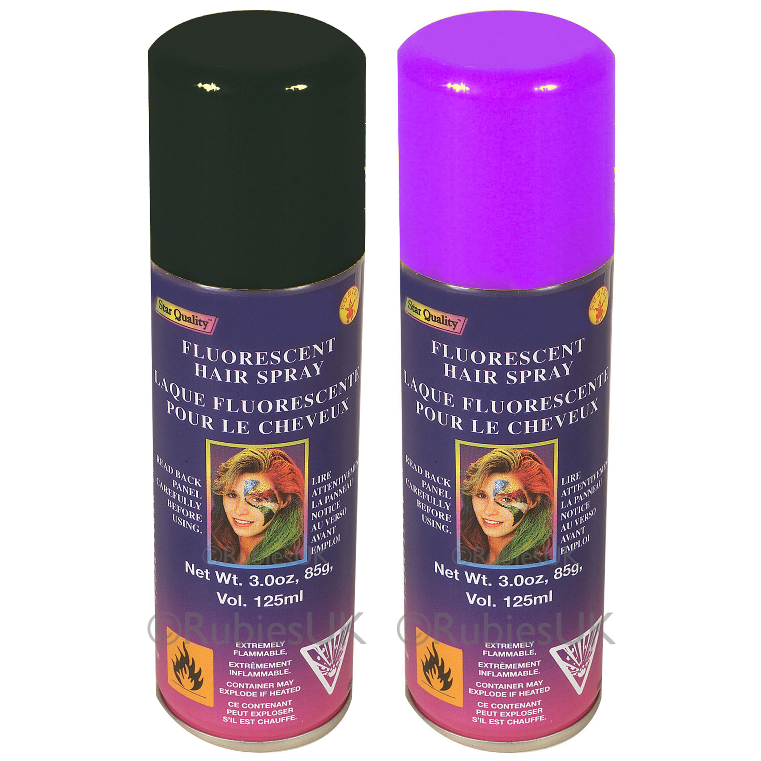 Haarverf/haarspray, set van 2x stuks, in de kleuren zwart en neon paars. De spuitbus heeft per stuk een inhoud van 125 ml.
