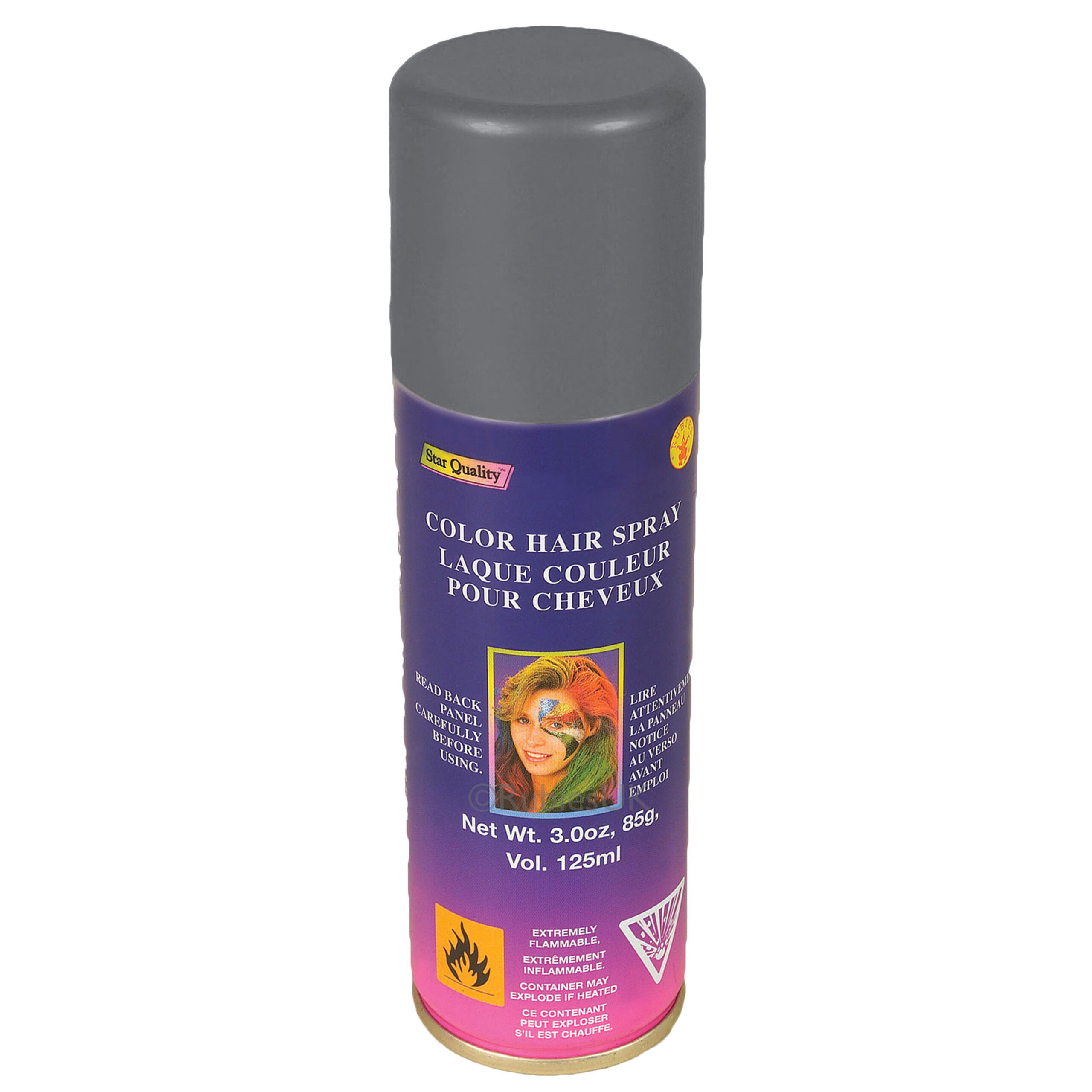 Haarverf/haarspray in de kleur zilver. De spuitbus heeft een inhoud van 125 ml. Geef de finishing touch aan elke verkleed outfit met deze kleur in je haar. De kleur is makkelijk uitwasbaar met water.