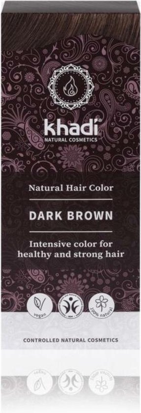 Khadi Haarverf is een 100% plantaardige, vegan haarverfpoeder waarmee u uw haar op een natuurlijke manier voorziet van de meeste intense en prachtige kleur. De kleur Dark Brown geeft een mooie donkerbruine tint aan donkerblond tot lichtbruin haar. De tint is afhankelijk van