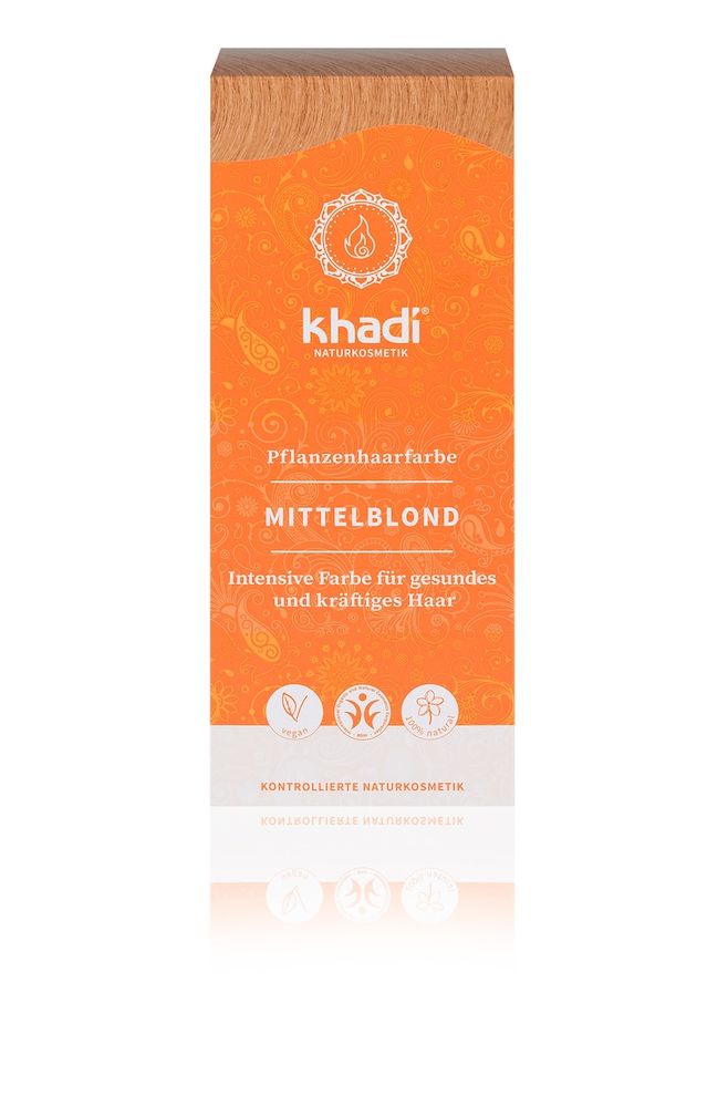 Khadi Haarverf is een 100% plantaardige, vegan haarverfpoeder waarmee u uw haar op een natuurlijke manier voorziet van de meeste intense en prachtige kleur. De kleur Medium Blond geeft een warme middenbruine kleuring met warme roodtinten aan blond, lichtbruin en grijs