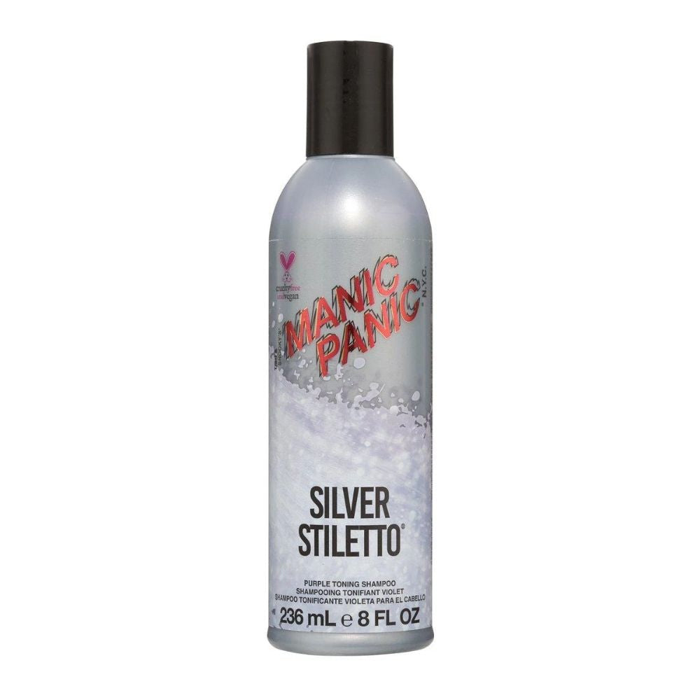 Manic Panic Silver Stiletto® Shampoo vermindert gele en oranje tinten en geeft het haar een zachte violet tint.