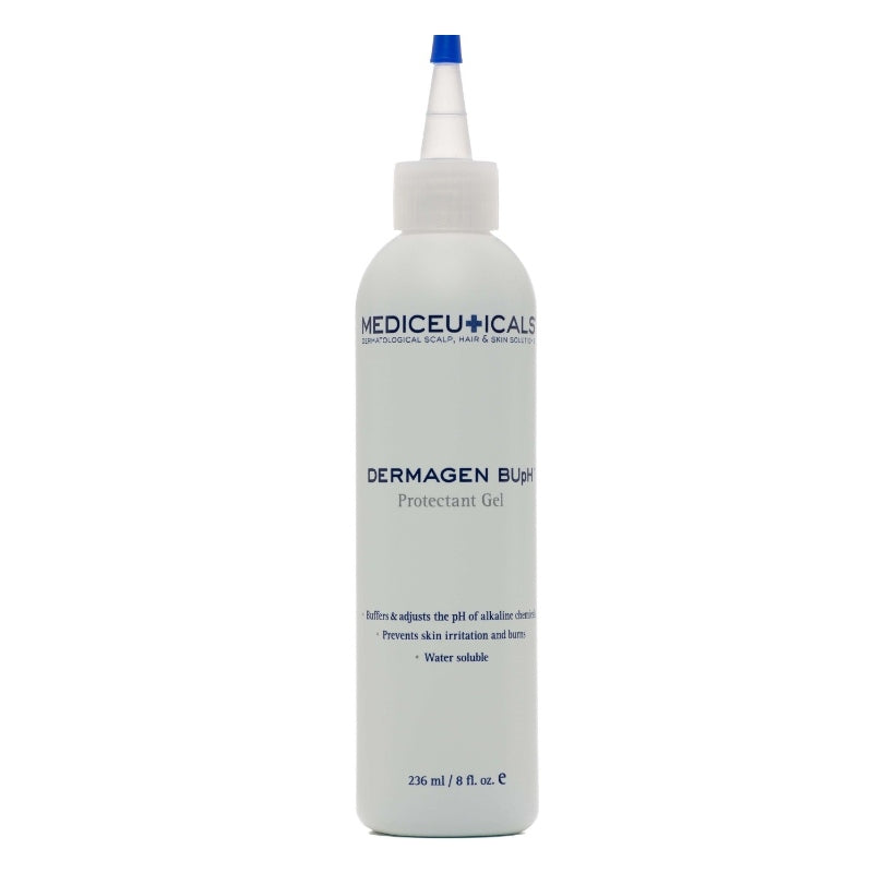 Mediceuticals Buph is een gel op waterbasis die de hoofdhuid beschermt tegen chemicaliën zoals haarverf en blondering. De gel helpt dat er geen vlekken op de hoofdhuid ontstaan door het kleuren. Daarnaast draagt het bij tegen irritatie, jeuk en brandwonden op de hoofdhuid van eventuele chemische behandelingen op de hoofdhuid en reguleert het de PH-waarde.