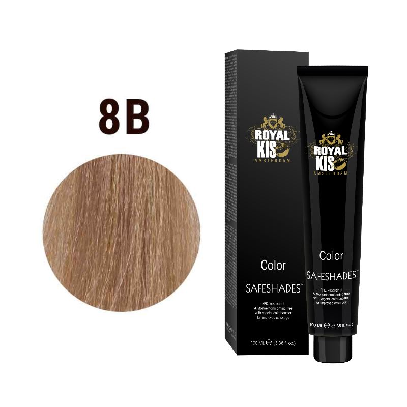 De Royal KIS SafeShade is een nieuwe generatie permanente haarkleuring voor alle haartypes. Deze haarverf introduceert de perfecte harmonie tussen wetenschap en de natuur. De uitgebalanceerde, milde formule bevat tot 25% lipiden. Daarnaast zijn de meest intensieve, verzorgende ingrediënten gekozen en is de formule vrij van PPD MEA en resorcinol. Doordat het product een minimale hoeveelheid ammonia heeft (maximaal 1% bij een mengverhouding van 1:1,5) wordt het gewenste effect bereikt zonder het haar te veel te beschadigen. De intense pigmenten in de verf zorgen voor een + 75% meer duurzame kleuring na 5 wasbeurten. Daarnaast zorgen de pigmenten voor +23% meer kleurintensiteit in vergelijking met andere haarverven. Dit product geeft een 100% grijsdekking en zorgt voor helderder, sterker en zijdezacht haar kleur na kleur.