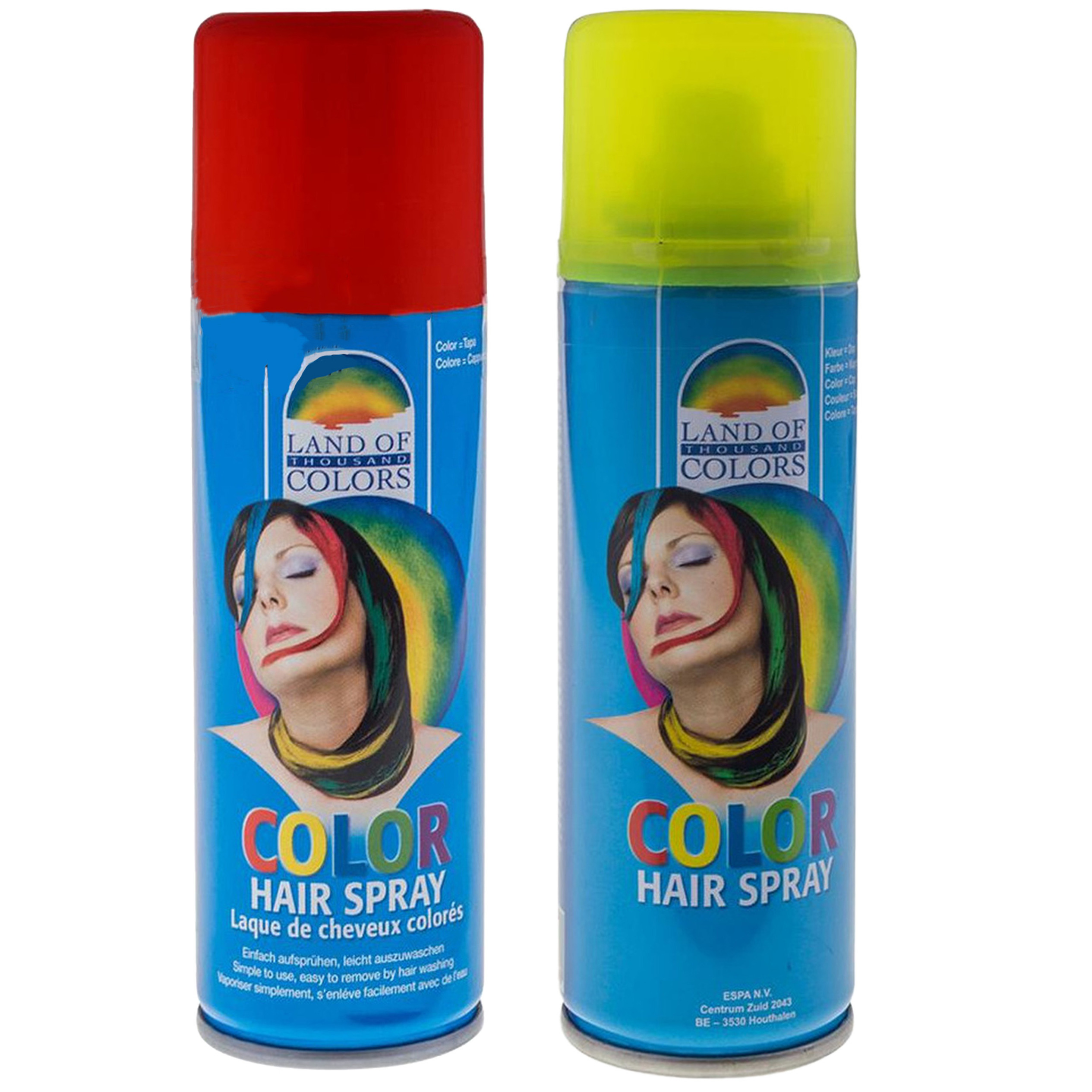 Set van 2x kleuren carnaval haarverf/haarspray van 111 ml – Rood en Geel –