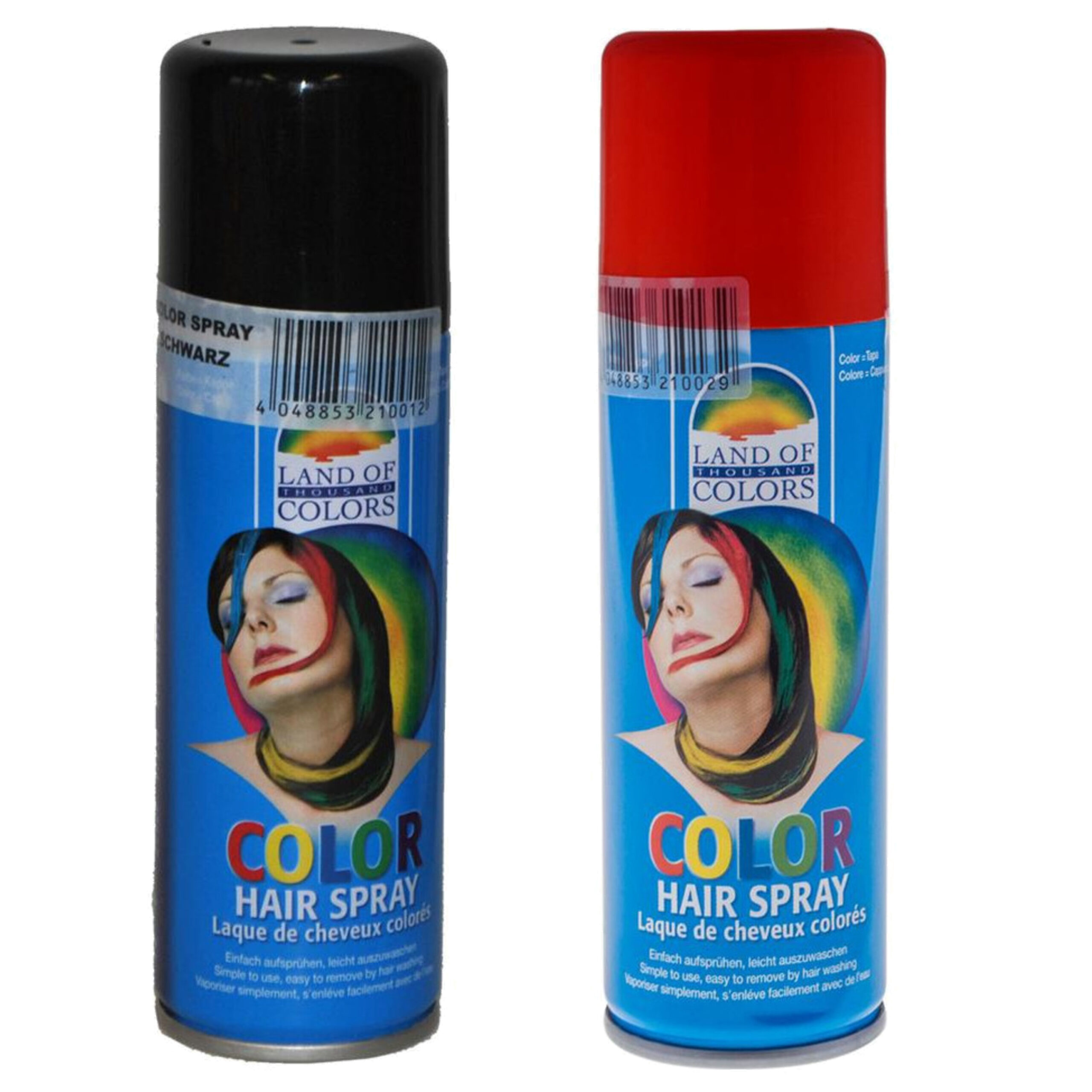 Set van 2x kleuren haarverf/haarspray van 111 ml – Zwart en Rood