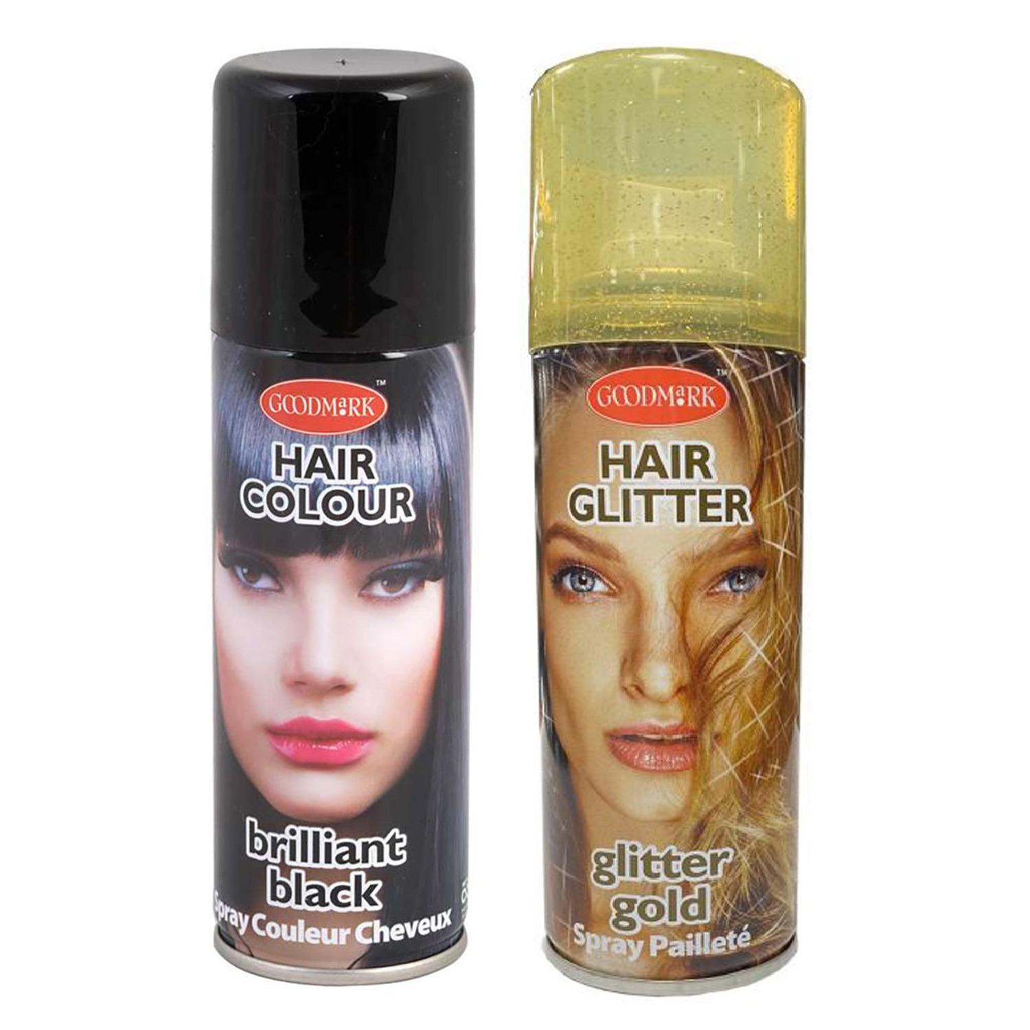 Set van 2x kleuren haarverf/haarspray van 125 ml – Zwart en Goud glitters