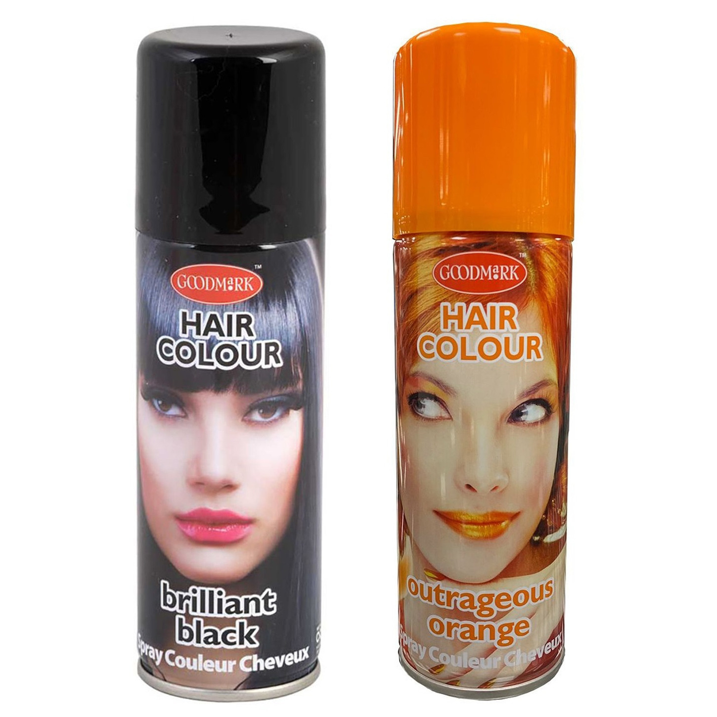 Set van 2x kleuren haarverf/haarspray van 125 ml – Zwart en Oranje