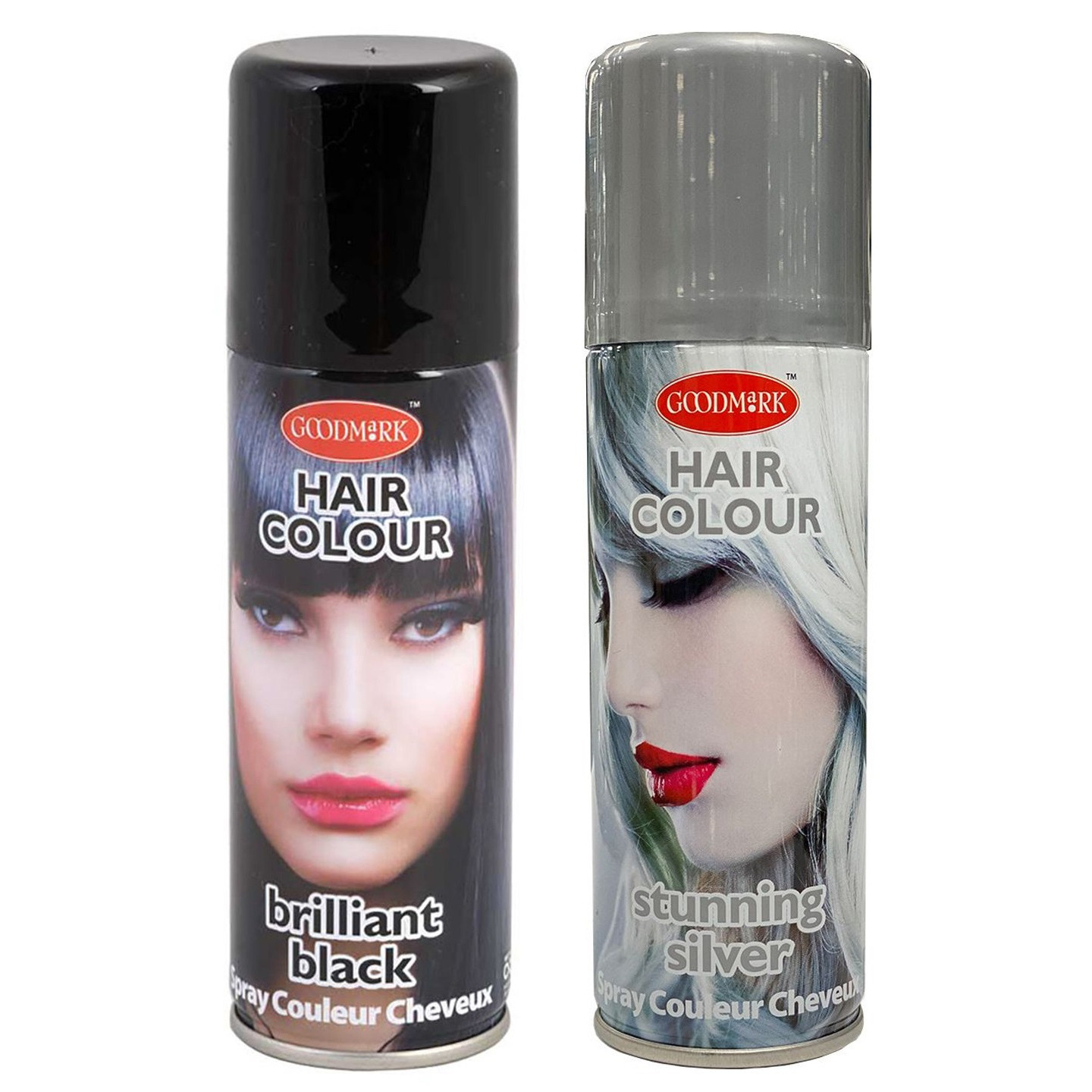 Set van 2x kleuren haarverf/haarspray van 125 ml. Zwart en Zilver. Carnaval verkleed spullen. Makkelijk uitwasbaar met water. Haarverf combies kleuren set voor o.a. Halloween. , Dit artikel bestaat uit:, 1x Haarspray of haarverf – kleur zilver – verkleed accessoires – 125 ml – volwassenen en kinderen, 1x Haarspray of haarverf – kleur zwart – verkleed accessoires – 125 ml – volwassenen en kinderen