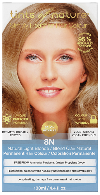 Tints of Nature 8N Natural Light Blonde is een permanente haarkleuring voor natuurlijk zonnig blond haar. De haarverf bestaat uit gecertificeerde biologische en natuurlijke ingrediënten die uw haar voeding en bescherming bieden tijdens het kleuren. Deze haarverf van Tints of